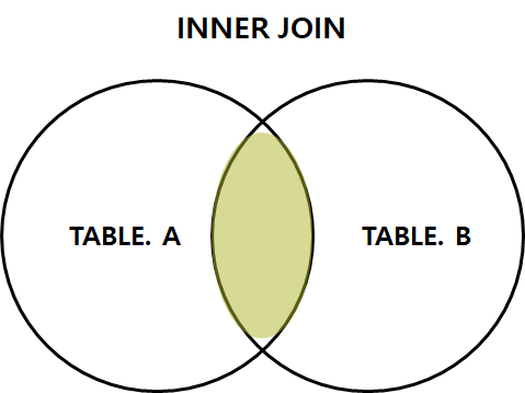 INNER(내부) JOIN 이란, 두 테이블간 조인 조건을 만족하는 행을 반환할 때 사용하는 구문이다.