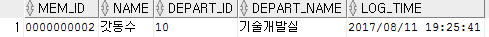 SELECT A.MEM_ID, A.NAME, A.DEPART_ID, B.DEPART_NAME, C.LOG_TIME