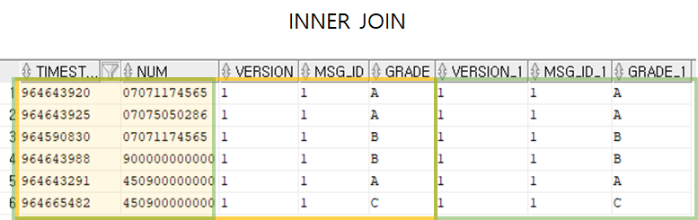두개 컬럼에서 공통된 값이 없다면 테이블로부터 데이터를 반환하지 못한다는 것이다.